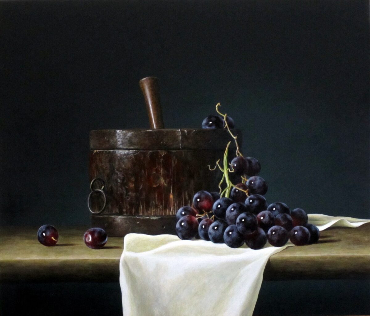 Old Measuring Pot with Grapes