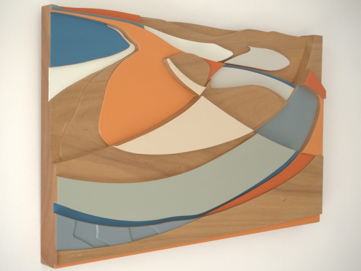 Australian White Beech - one piece Acrylic colours and clear polyurethane paints 60 x 37.5 x 5.4 cm